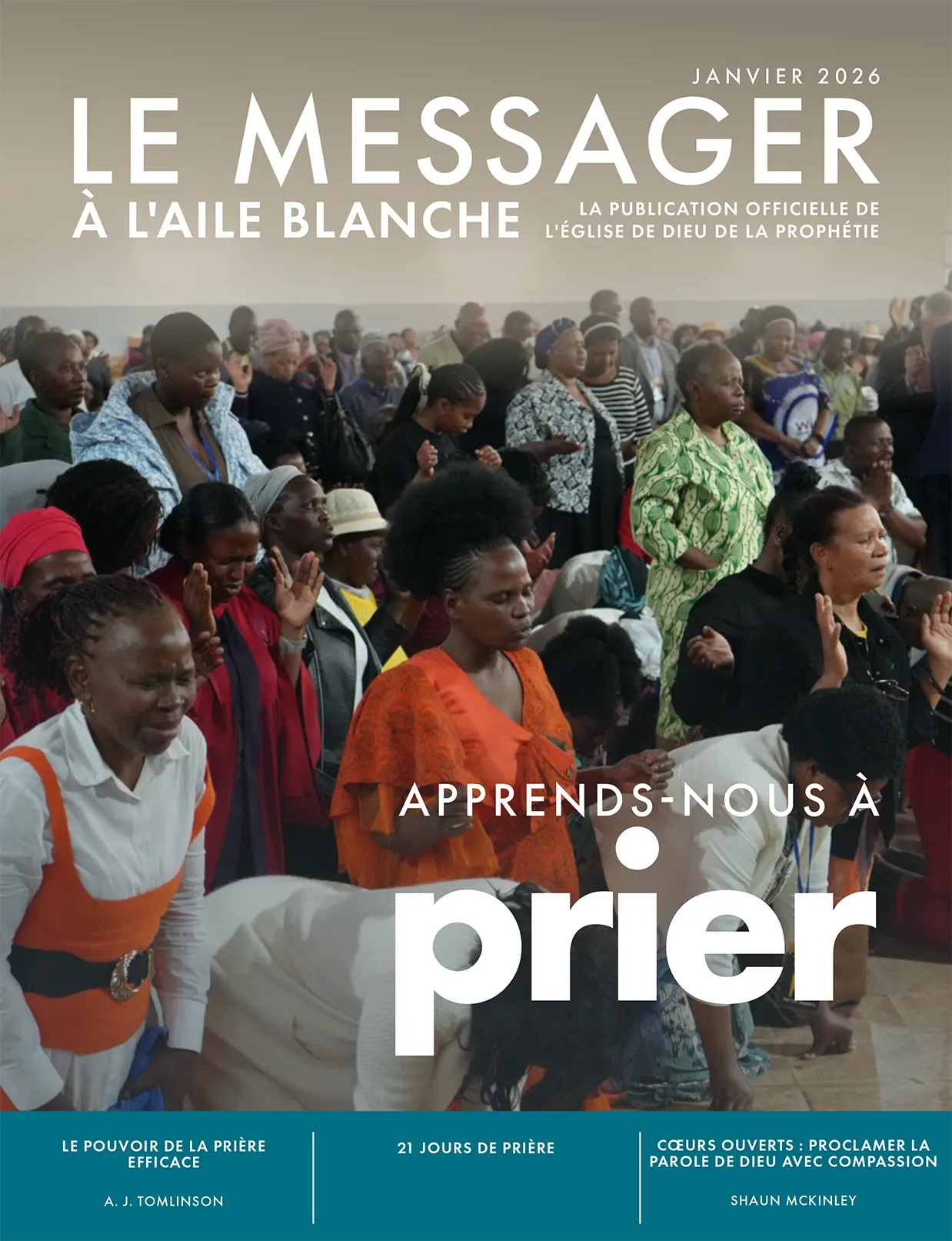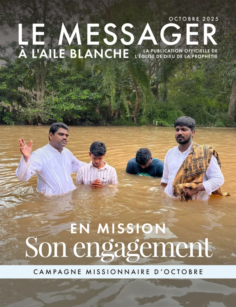 Depuis 100 ans, le Messager à l’Aile Blanche fait partie intégrante du ministère de l’Église de Dieu de la Prophétie. Depuis sa création en 1923 par l’Évêque général A. J. Tomlinson, le magazine a été distribué sous forme de journal aux membres de l’Église, portant le message de l’Évangile et le cœur du travail que l’Église accomplissait, près de chez elle et à l’étranger. Depuis ces premières années, le Messager à l’Aile Blanche a connu de nombreux changements. Il est devenu un magazine, une publication en couleur et, au cours des dernières années, est devenu numérique. À travers tout cela, le message est resté le même. Jésus est le Seigneur et son Église est vivante !